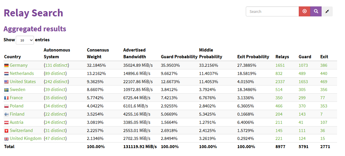 One major problem with Tor is the very low level of decentralization of the network. Most nodes are located in Germany, the Netherlands, and the US. Of course, it’s not a bad thing to host a node there, but Tor specifically recommends that, if possible, you host your node in a country where there are still very few or even no nodes at all. Tor also advises against hosting with well-known, large providers such as Hetzner, as there are already so many nodes there.